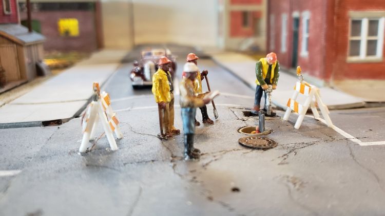Roadworks in progress, the jack hammering is a little hard on the guy